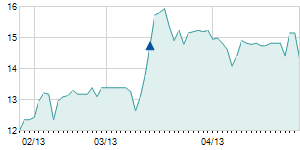 Closing price on 6/21/2013