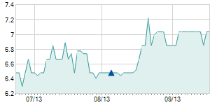 3/10/2017 +0.10 / +0.35% 28.05 28.75 28.05 28.40 28.45 13.56 61,260