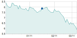 | 6/8/2018 | -0.30 / -0.86% | 34.80 | 34.85 | 34.10 | 34.50 | 34.38 | 27.02 | 2,759,857 |   |