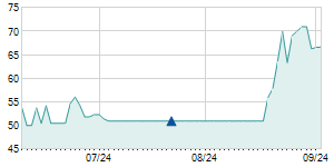| 9/18/2020 | +4.00 / +7.55% | 53.30 | 58.00 | 53.00 | 57.00 | 54.91 | 44.40 | 283,300 |   |