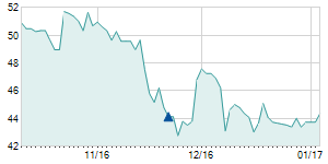 | 3/13/2018 | -4.50 / -7.83% | 58.00 | 58.00 | 53.00 | 53.00 | 54.87 | 25.83 | 85,600 |   |