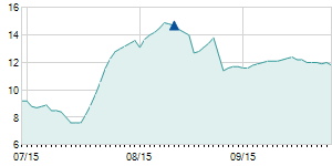 Closing price on 8/15/2013