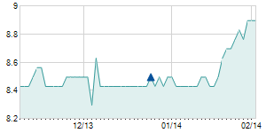 8/29/2013 +0.10 / +0.86% 11.60 11.70 11.60 11.70 11.70 3.78 50