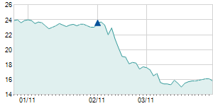 | 12/28/2017 | -1.90 / -14.62% | 13.20 | 14.90 | 11.10 | 11.10 | 13.50 | 9.49 | 800 |   |