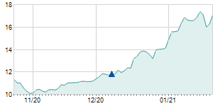 Closing price on 3/15/2021