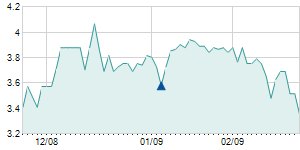 | 1/20/2012 | -0.10 / -0.84% | 11.90 | 12.00 | 11.70 | 11.80 | 11.80 | 1.49 | 2,155,370 |   |