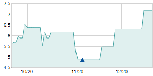 | 3/6/2023 | +0.15 / +0.87% | 17.40 | 17.70 | 17.30 | 17.30 | 17.50 | 9.37 | 7,388,488 |   |