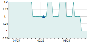 | 10/30/2023 | -1.30 / -7.03% | 18.60 | 18.60 | 17.20 | 17.20 | 17.84 | 12.59 | 2,456,700 |   |