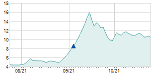 9/7/2017 +0.50 / +4.35% 11.50 12.20 11.50 12.00 11.96 3.49 348,969
