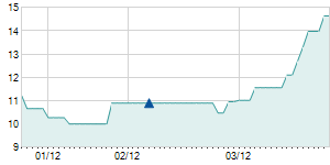 Closing price on 12/14/2012