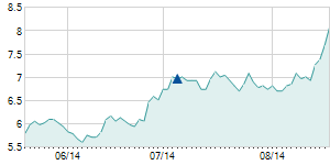 Closing price on 8/14/2009