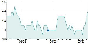 | 3/31/2023 | +2.00 / +5.63% | 36.60 | 37.50 | 35.00 | 37.50 | 36.30 | 37.50 | 29,700 |   |