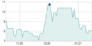 Closing price on 10/9/2020