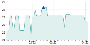 | 1/26/2021 | -0.50 / -1.31% | 38.20 | 38.30 | 37.70 | 37.80 | 37.84 | 33.20 | 48,000 |   |