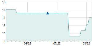 | 7/31/2020 | +0.60 / +4.65% | 12.90 | 14.10 | 12.90 | 13.50 | 13.83 | 11.63 | 87,000 |   |