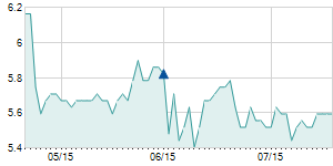 | 9/7/2016 | +0.20 / +0.58% | 34.50 | 34.80 | 34.30 | 34.70 | 34.45 | 15.19 | 263,950 |   |