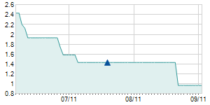 | 4/21/2016 | -1.10 / -3.59% | 30.60 | 30.60 | 29.50 | 29.50 | 29.84 | 12.37 | 665,630 |   |