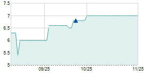 | 1/30/2013 | +0.20 / +6.06% | 3.50 | 3.50 | 3.40 | 3.50 | 3.50 | 3.50 | 61,320 |   |