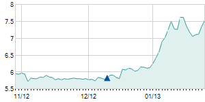 Closing price on 1/15/2013