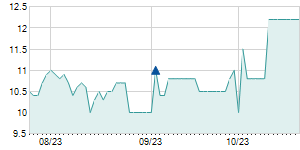 | 12/10/2015 | -0.90 / -6.38% | 13.10 | 13.20 | 13.00 | 13.20 | 13.11 | 3.27 | 417,170 |   |