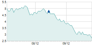 | 6/4/2012 | -1.00 / -4.35% | 22.80 | 22.80 | 21.90 | 22.00 | 22.00 | 4.45 | 541,510 |   |