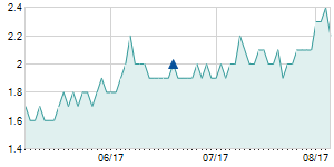 | 9/27/2017 | +1.90 / +2.74% | 69.70 | 73.50 | 69.70 | 71.20 | 71.74 | 25.17 | 3,269,480 |   |