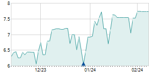 | 10/14/2020 | -0.02 / -0.24% | 8.30 | 8.32 | 8.00 | 8.16 | 8.09 | 8.16 | 1,105,620 |   |