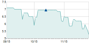 | 2/1/2016 | -0.10 / -0.77% | 13.00 | 13.00 | 12.80 | 12.90 | 12.90 | 3.03 | 302,890 |   |