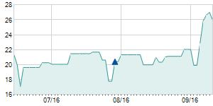 Closing price on 12/8/2016