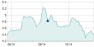 | 11/4/2015 | +0.10 / +0.32% | 31.50 | 32.20 | 31.50 | 31.80 | 31.93 | 9.47 | 57,660 |   |