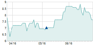 Closing price on 8/29/2016