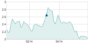 | 6/17/2020 | -0.15 / -0.62% | 24.10 | 24.40 | 23.95 | 24.00 | 24.10 | 14.12 | 135,670 |   |