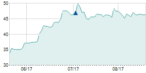 | 10/2/2015 | +2.50 / +4.59% | 54.50 | 58.00 | 53.50 | 57.00 | 56.04 | 10.38 | 137,550 |   |  |