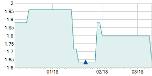 | 4/18/2019 | -0.10 / -2.94% | 3.40 | 3.40 | 3.30 | 3.30 | 3.37 | 3.30 | 1,500 |   |