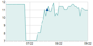 | 4/11/2019 | +0.20 / +6.25% | 3.30 | 3.40 | 3.30 | 3.40 | 3.31 | 3.40 | 1,200 |   |