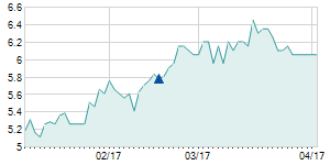 6/22/2011 -0.20 / -3.23% 6.00 6.40 6.00 6.00 6.07 5.78 69,700
