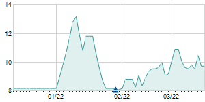 | 3/16/2020 | -0.08 / -0.86% | 9.20 | 9.50 | 8.90 | 9.22 | 9.22 | 6.83 | 4,036,890 |   |