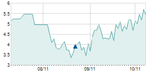 | 8/10/2011 | +0.10 / +2.33% | 4.50 | 4.50 | 4.30 | 4.40 | 4.44 | 4.40 | 302,500 |   |