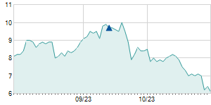 | 11/29/2018 | -0.20 / -3.86% | 5.26 | 5.26 | 4.98 | 4.98 | 5.07 | 4.98 | 49,690 |   |