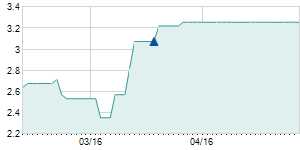 | 3/14/2018 | +0.70 / +4.52% | 15.50 | 16.20 | 15.00 | 16.20 | 16.04 | 7.24 | 255,000 |   |