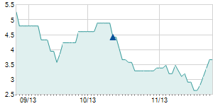 | 4/20/2018 | -0.60 / -4.41% | 11.60 | 14.10 | 11.60 | 13.00 | 12.92 | 5.81 | 1,200 |   |