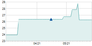 | 12/28/2016 | -1.50 / -6.52% | 21.50 | 21.50 | 21.50 | 21.50 | 21.50 | 12.08 | 1,015 |   |