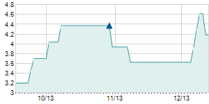 | 12/14/2016 | -0.10 / -0.47% | 21.50 | 21.60 | 21.40 | 21.40 | 21.50 | 12.02 | 6,100 |   |