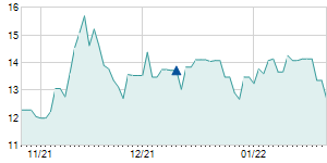 | 1/13/2022 | -1.80 / -5.22% | 34.50 | 35.00 | 32.50 | 32.70 | 33.41 | 27.19 | 196,700 |   |