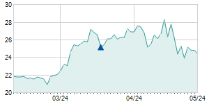 | 1/25/2022 | +1.00 / +4.12% | 24.30 | 25.40 | 24.00 | 25.30 | 24.75 | 21.04 | 150,300 |   |