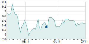 | 7/24/2024 | +0.30 / +2.73% | 11.00 | 11.30 | 10.70 | 11.30 | 11.02 | 9.40 | 12,200 |   |