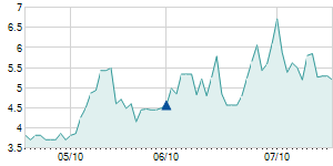 | 8/30/2012 | -0.10 / -1.39% | 7.40 | 7.40 | 6.80 | 7.10 | 6.88 | 3.14 | 2,700 |   |