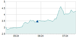 | 6/25/2024 | +0.10 / +1.27% | 7.90 | 8.10 | 7.90 | 8.00 | 7.91 | 7.41 | 16,700 |   |  |