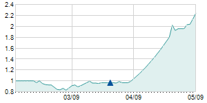 | 10/19/2016 | +0.30 / +3.37% | 8.80 | 9.20 | 8.80 | 9.20 | 8.83 | 7.00 | 6,053 |   |
