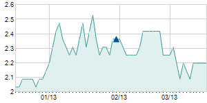 | 11/12/2014 | +0.10 / +0.66% | 15.10 | 15.30 | 15.00 | 15.30 | 15.30 | 9.52 | 134,000 |   |